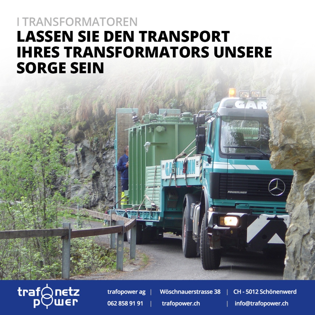 Der Transport eines Transformators ist komplex – doch das muss nicht Ihre Sorge sein! Die Trafopower AG übernimmt den gesamten logistischen Prozess für Sie, damit Ihre Anlage sicher ans Ziel kommt.